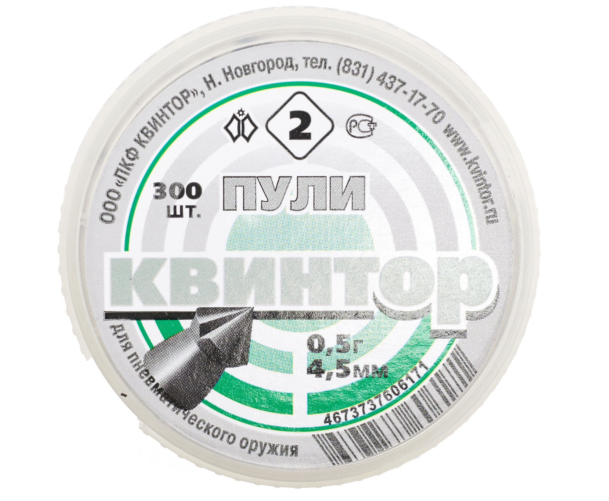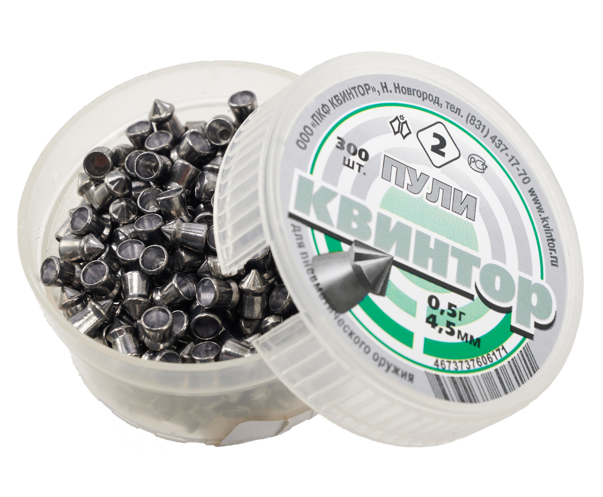 Характеристики пневматических пуль Квинтор 2 4.5 мм (300 шт, 0.5 грамма, pointed)